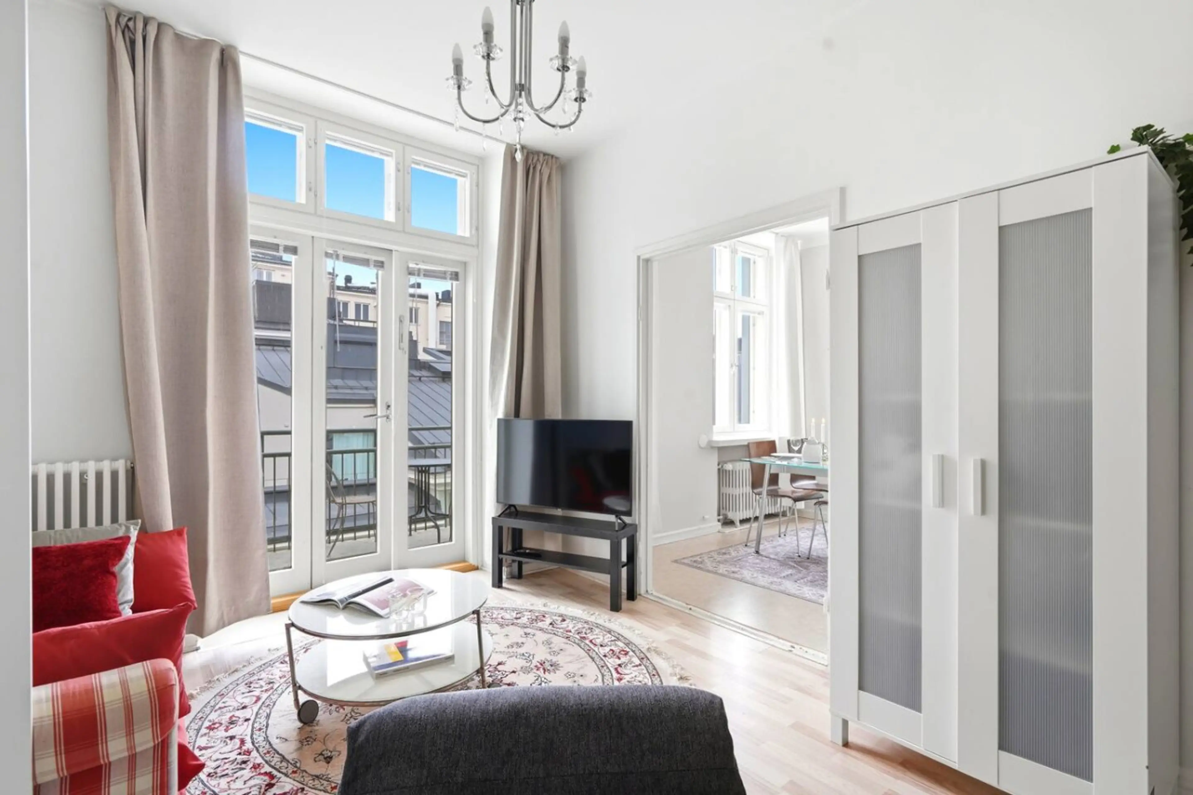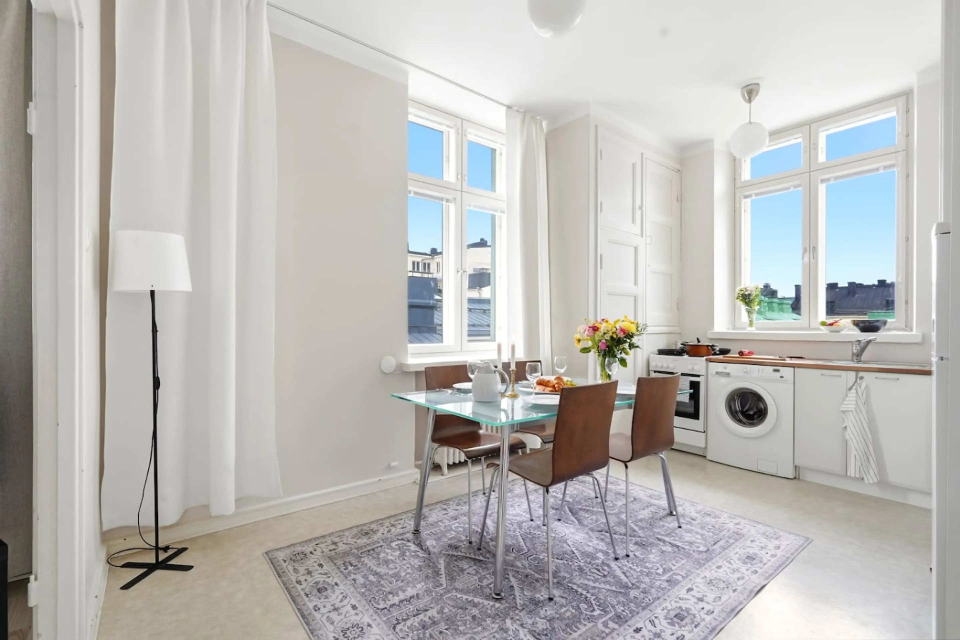 Stay in a renovated studio apartment on at the Kamppi–Punavuori border. Sleeps up to 5 guests with a queen bed, sofa bed and fold-out armchair. Private balcony with rooftop views and a quiet courtyard setting. Well-equipped kitchen, fast Wi-Fi, Smart TV and washing machine included. Distances: Tram...